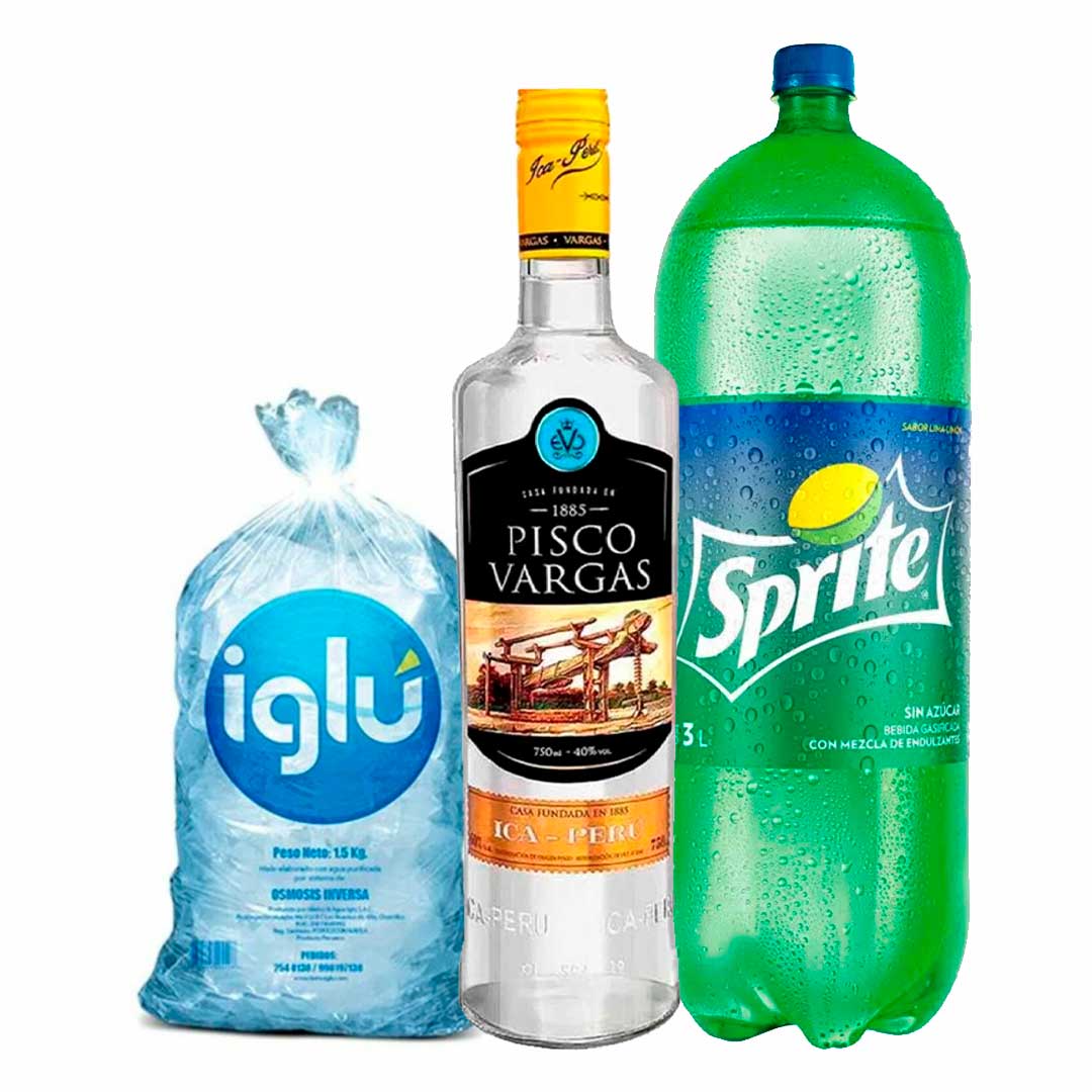 PACK PISCO VARGAS 700 ML + SPRITE 3L + HIELO