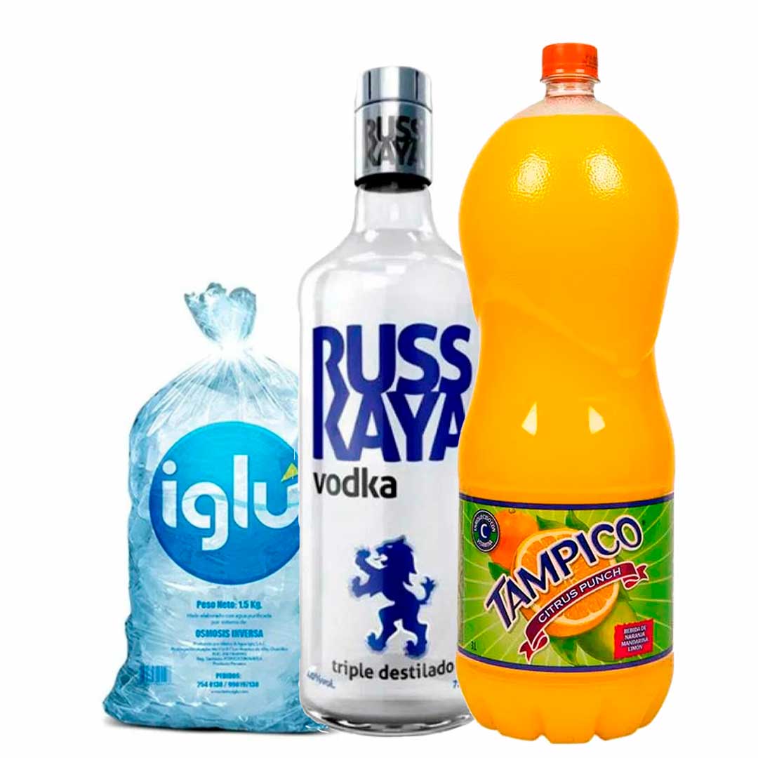 Pack Vodka Russ Kaya 750 ml+ Tampico 3L + Hielo Iglú